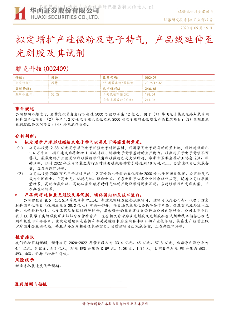 华西证券:雅克科技(002409)-拟定增扩产硅微粉及电子特气,产品线延伸至光刻胶及其试剂.pdf