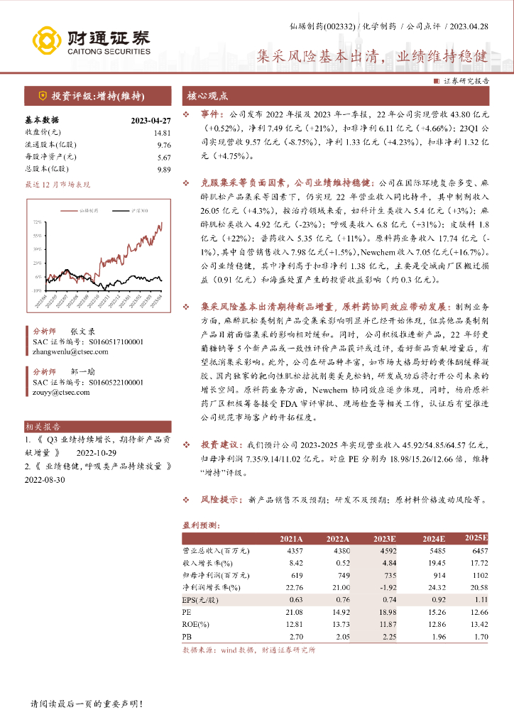 财通证券:仙琚制药(002332)-集采风险基本出清,业绩维持稳健.pdf