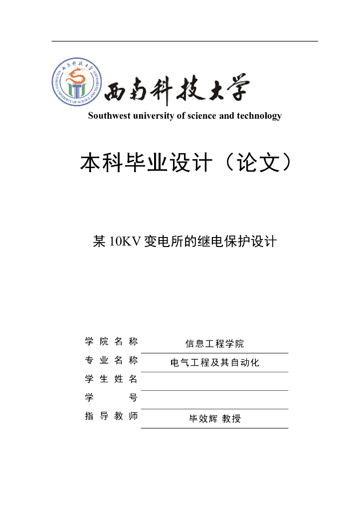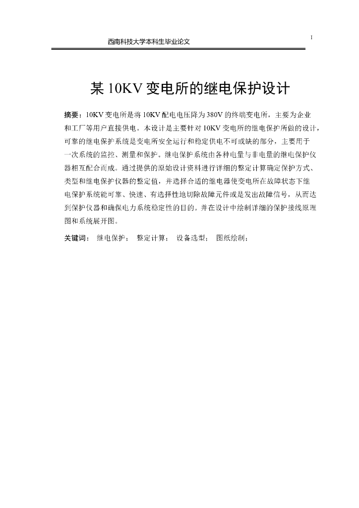 某10KV变电所的继电保护毕业设计.doc
