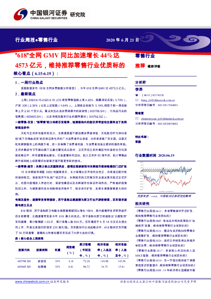 中国银河:零售行业周报:“618”全网GMV同比加速增长44%达4573亿元,维持推荐零售行业优质标的.pdf
