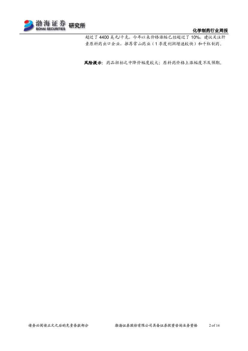 渤海证券:化学制药行业周报:个股表现持续分化,继续关注绩优龙头企业.pdf