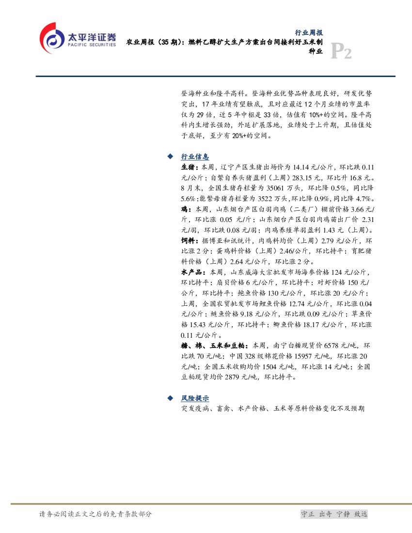 太平洋证券:农林牧渔行业周报:燃料乙醇扩大生产方案出台间接利好玉米制种业.pdf