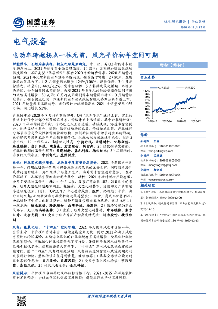 国盛证券:电气设备行业策略:电动车跨越拐点一往无前,风光平价初年空间可期.pdf