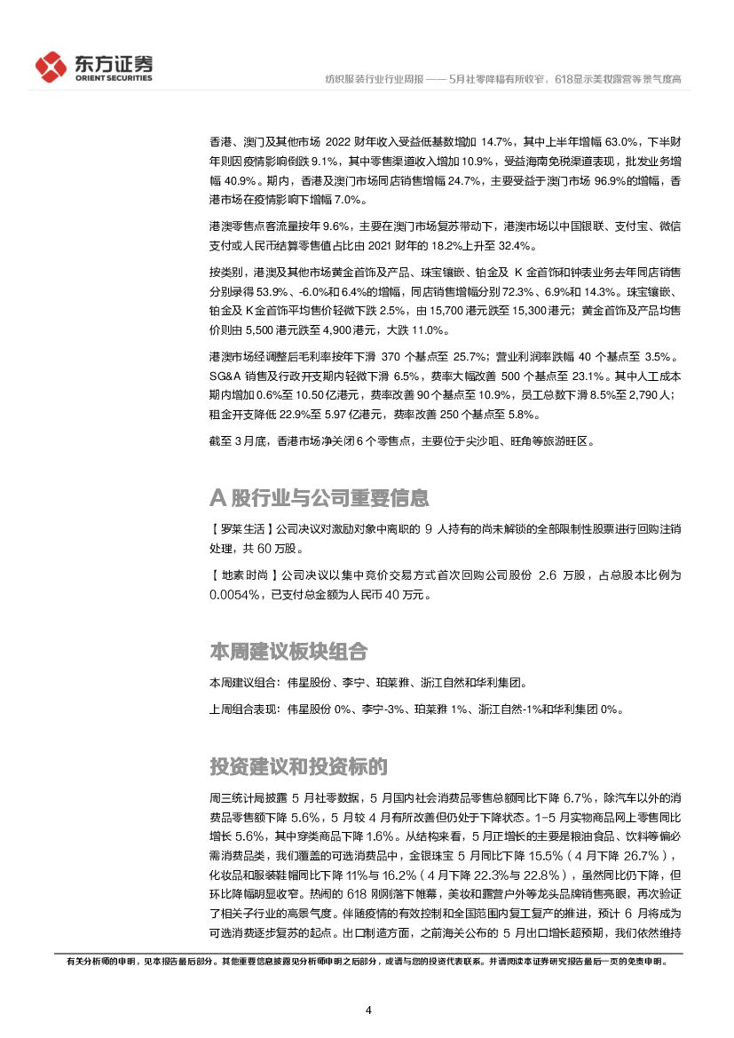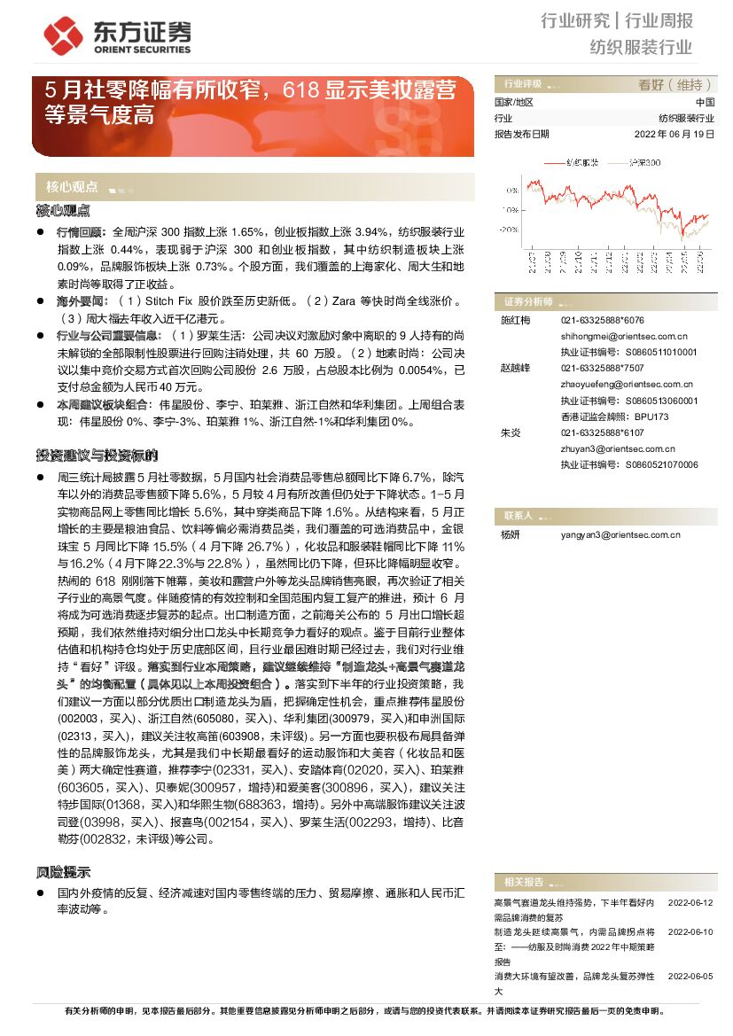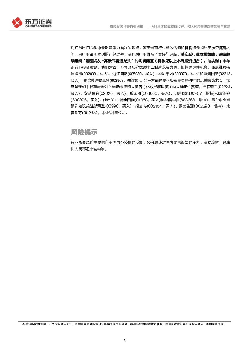 东方证券:纺织服装行业周报:5月社零降幅有所收窄,618显示美妆露营等景气度高.pdf