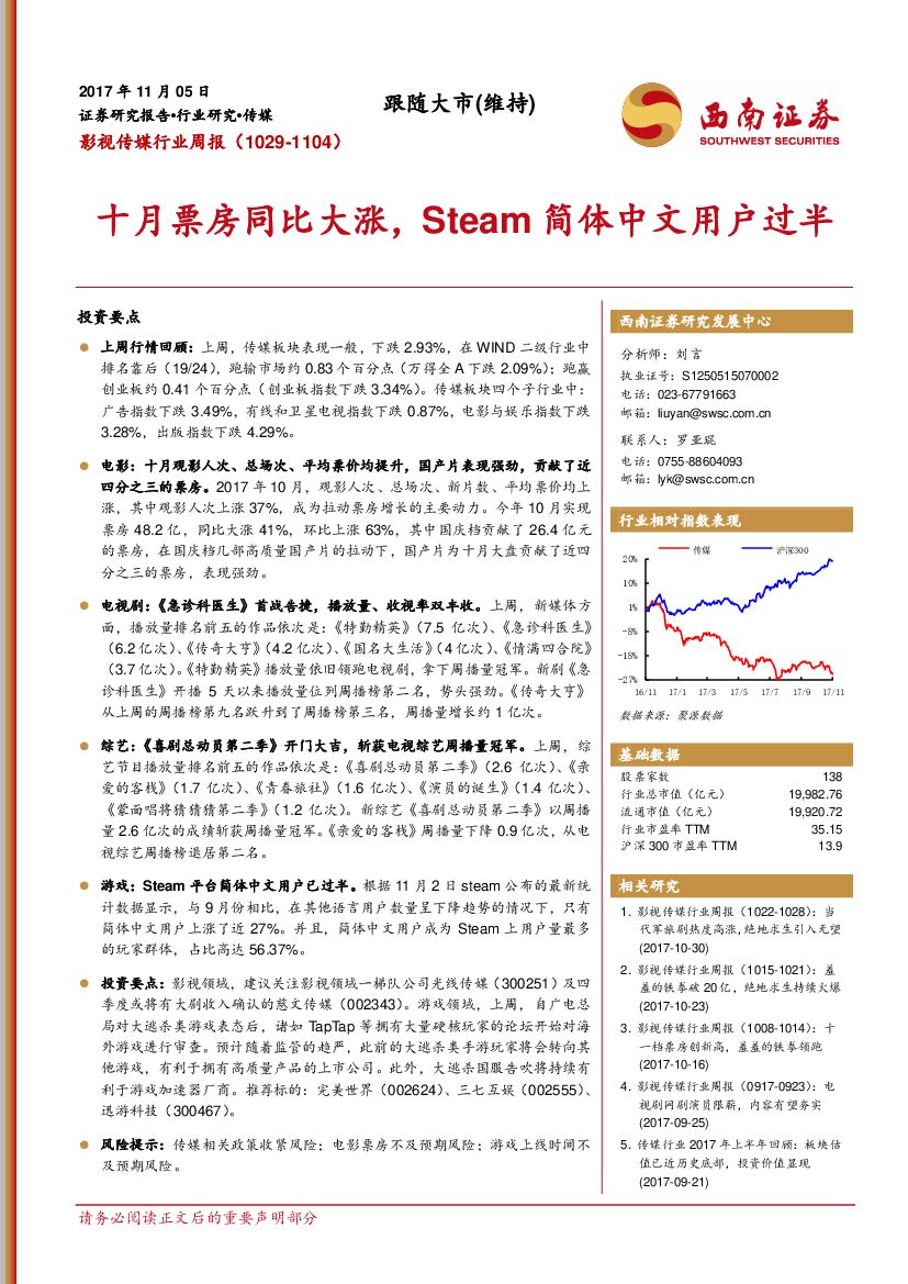 西南证券:影视传媒行业周报:十月票房同比大涨,Steam简体中文用户过半.pdf