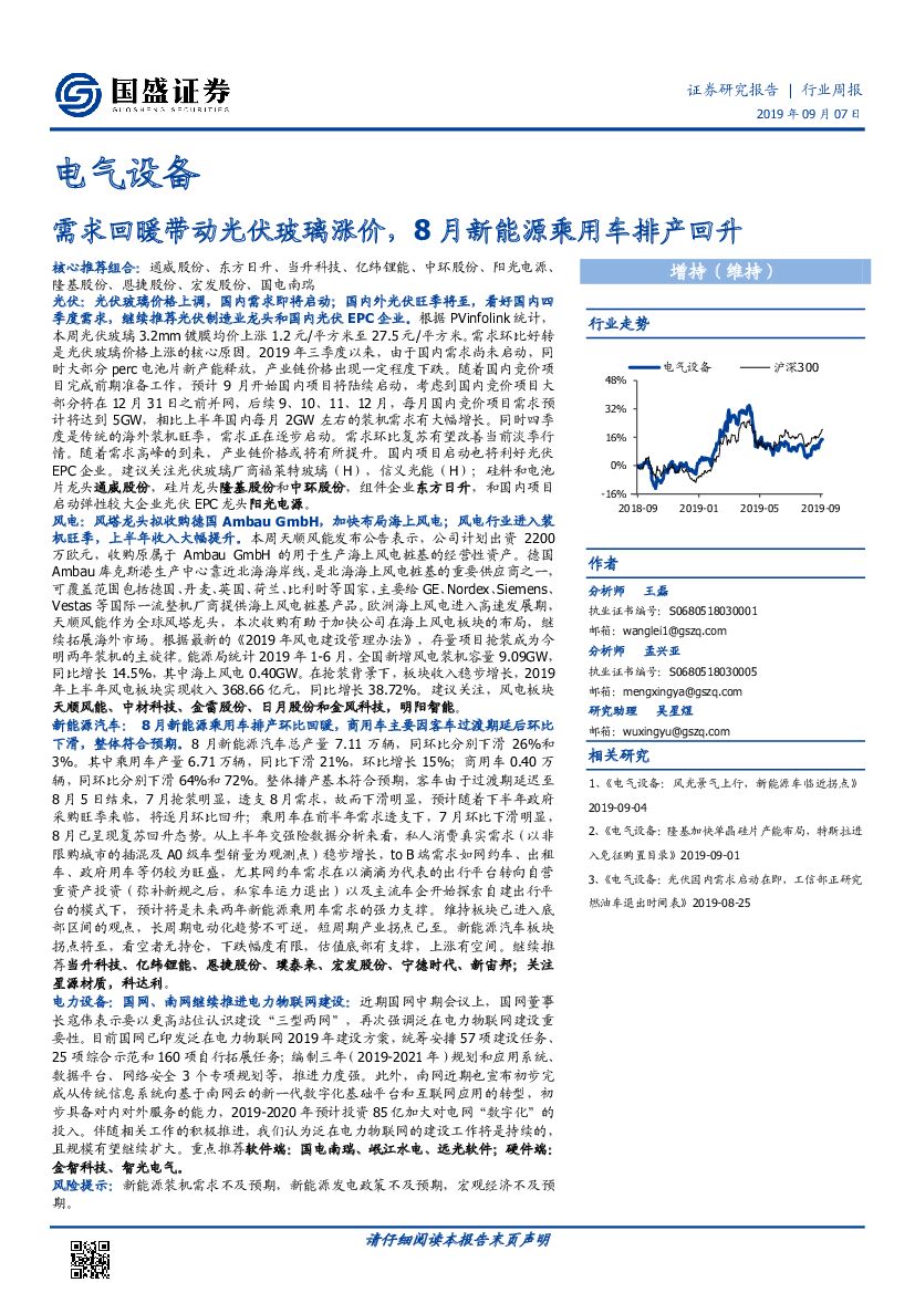 国盛证券:电气设备行业周报:需求回暖带动光伏玻璃涨价,8月新能源乘用车排产回升.pdf