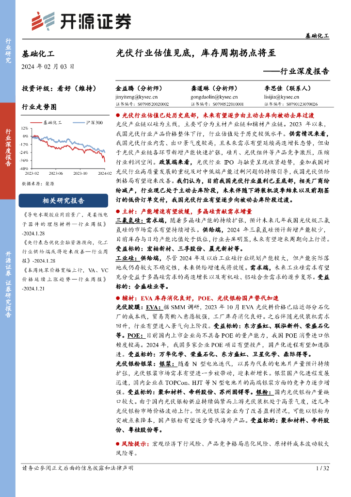 开源证券:基础化工行业深度报告:光伏行业估值见底,库存周期拐点将至.pdf