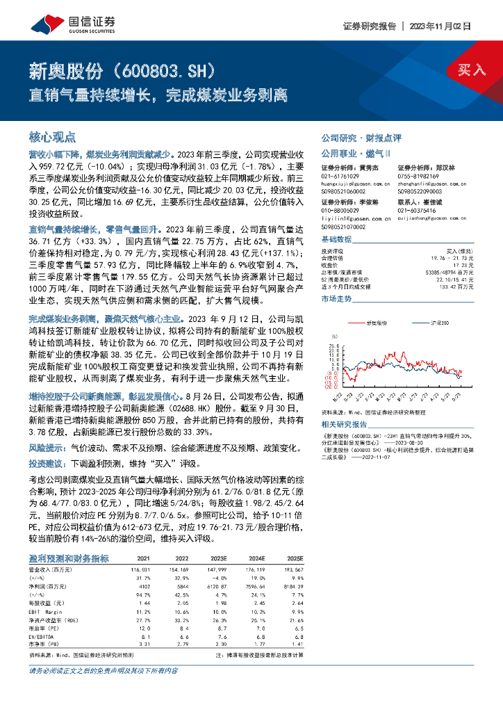 国信证券:新奥股份(600803)-直销气量持续增长,完成煤炭业务剥离.pdf
