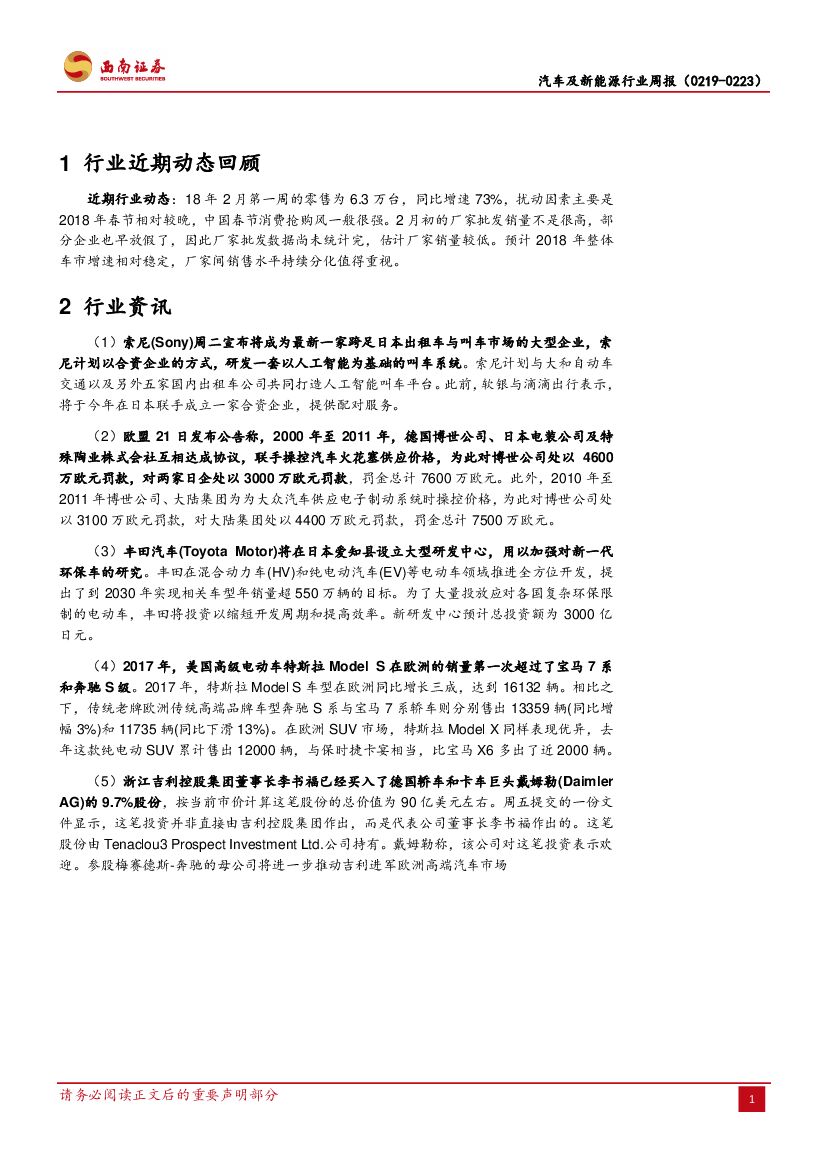 西南证券:汽车及新能源行业周报:春节前期销售旺盛,全年销售分化值得重视.pdf