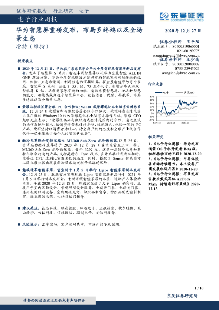 东吴证券:电子行业周报:华为智慧屏重磅发布,布局多终端以及全场景生态.pdf