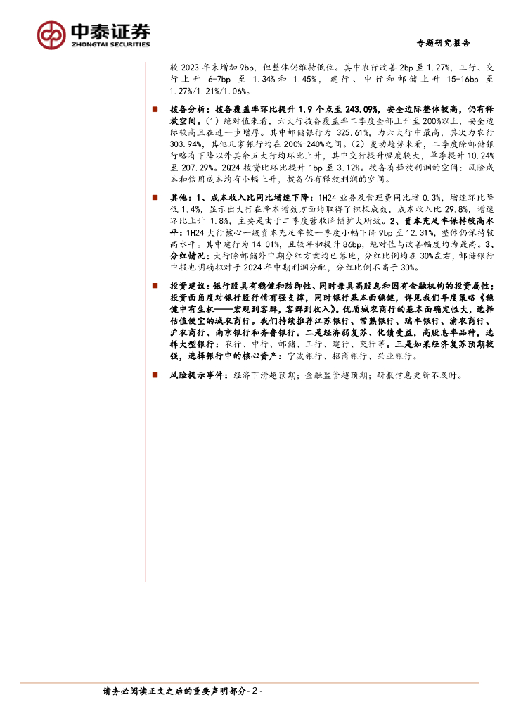 中泰证券:银行专题|详细拆解国有大型银行(六家)2024年半年报:利润增速边际改善,资产质量保持稳健.pdf
