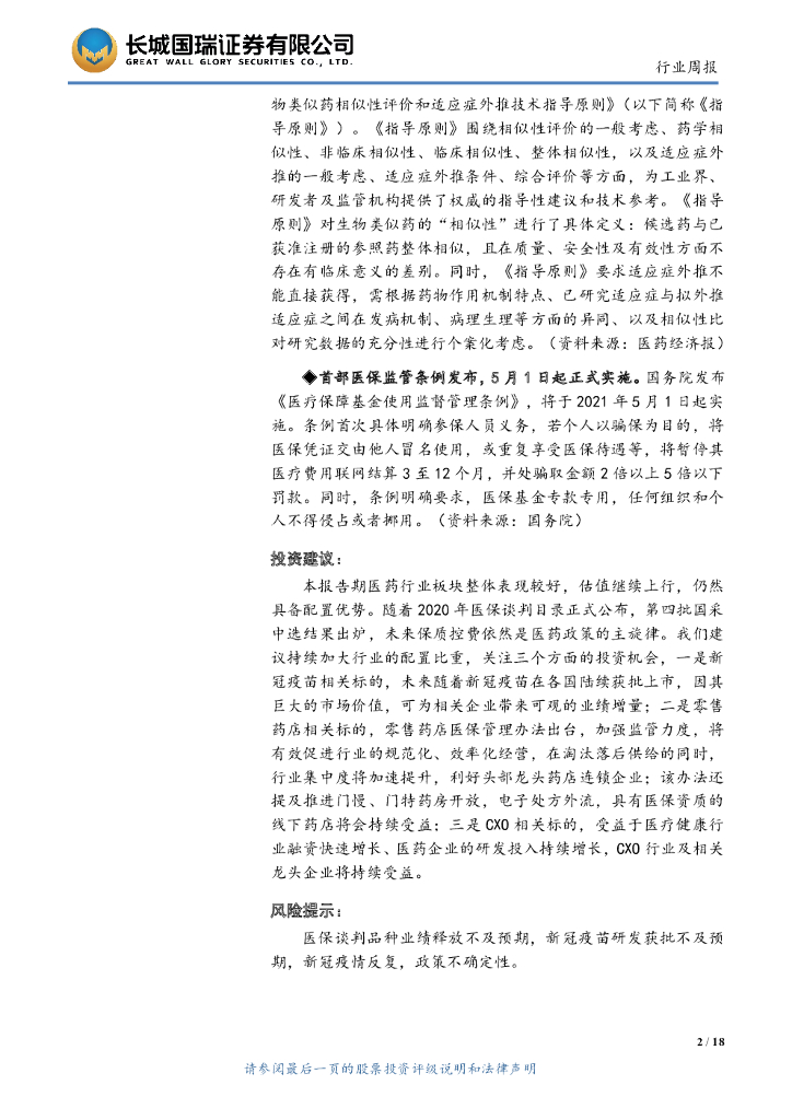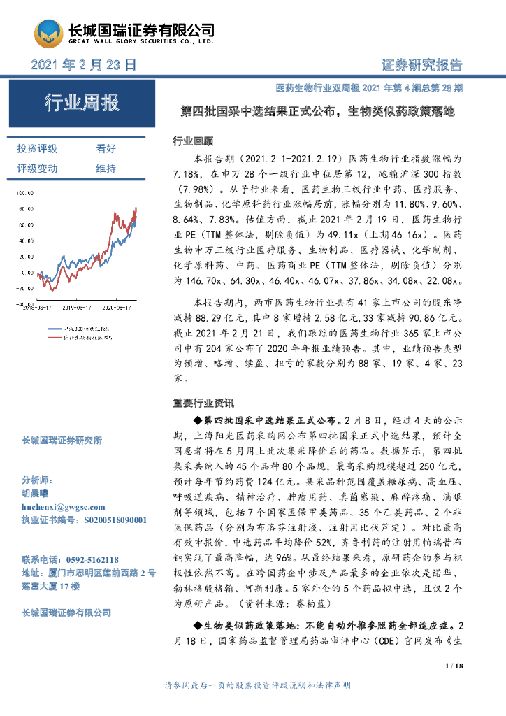 长城国瑞证券:医药生物行业双周报2021年第4期总第28期:第四批国采中选结果正式公布,生物类似药政策落地.pdf