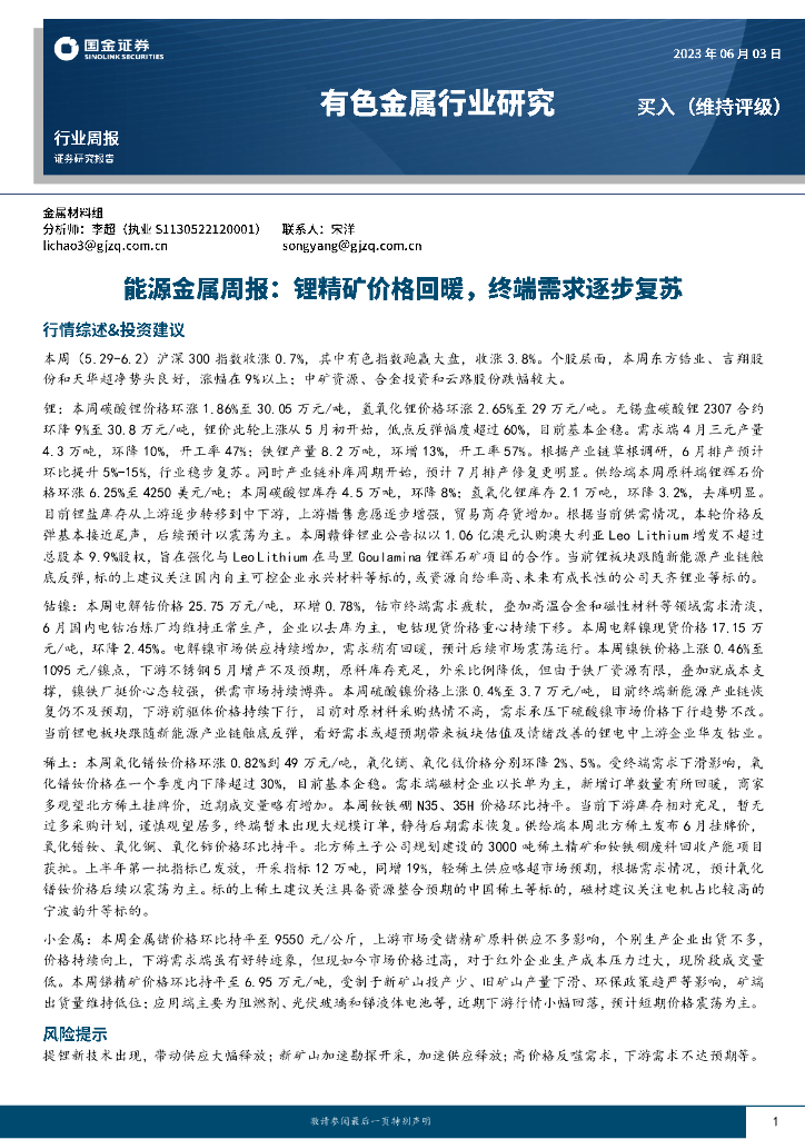 国金证券:能源金属周报:锂精矿价格回暖,终端需求逐步复苏.pdf