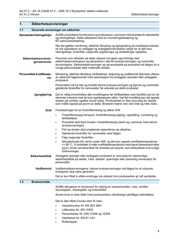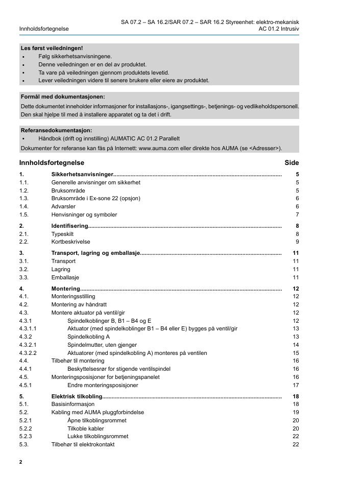 AUMA Multiturn aktuatorer SA 07.2 – SA 16.2/SAR 07.2 – SAR 16.2 Styreenhet: elektro-mekanisk med aktuatorstyring AUMATIC AC 01.2 Intrusiv.pdf