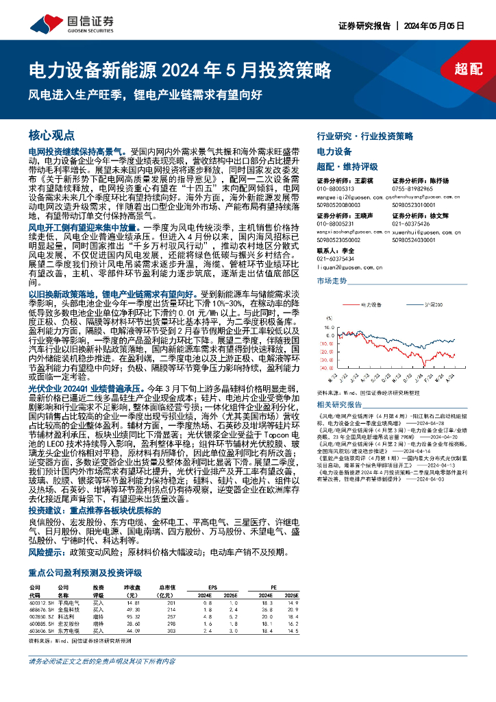国信证券:电力设备新能源2024年5月投资策略:风电进入生产旺季,锂电产业链需求有望向好.pdf