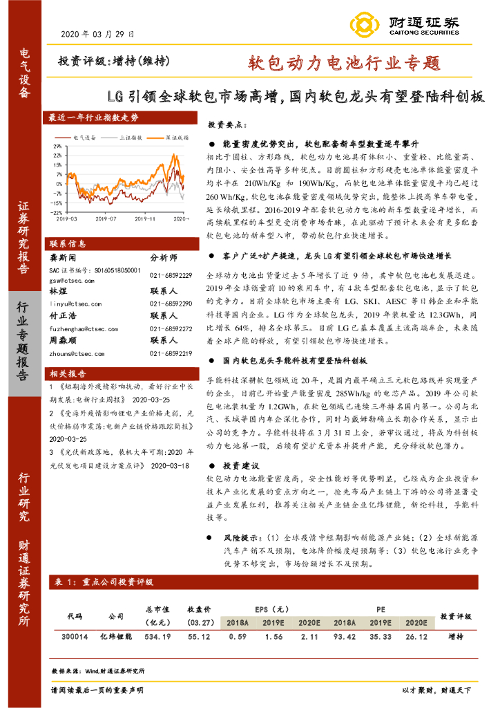 财通证券:电气设备:软包动力电池行业专题-LG引领全球软包市场高增,国内软包龙头有望登陆科创板.pdf