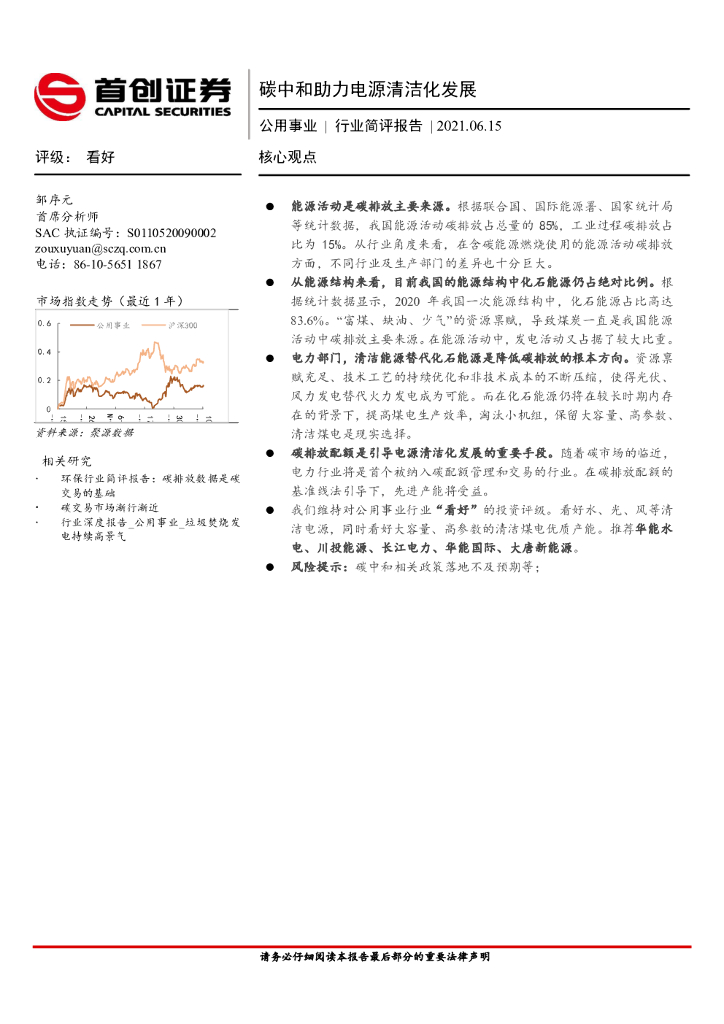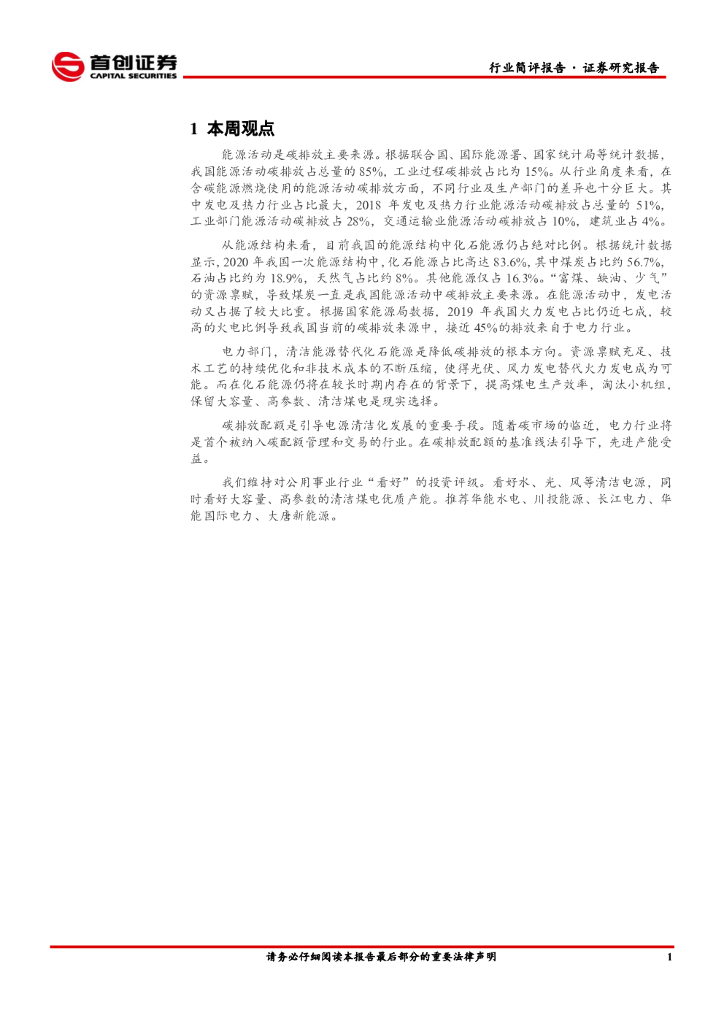 首创证券:公用事业行业简评报告:碳中和助力电源清洁化发展.pdf
