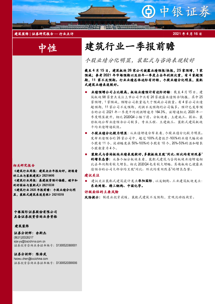 中银证券:建筑行业一季报前瞻:个股业绩分化明显,装配式与咨询表现较好.pdf