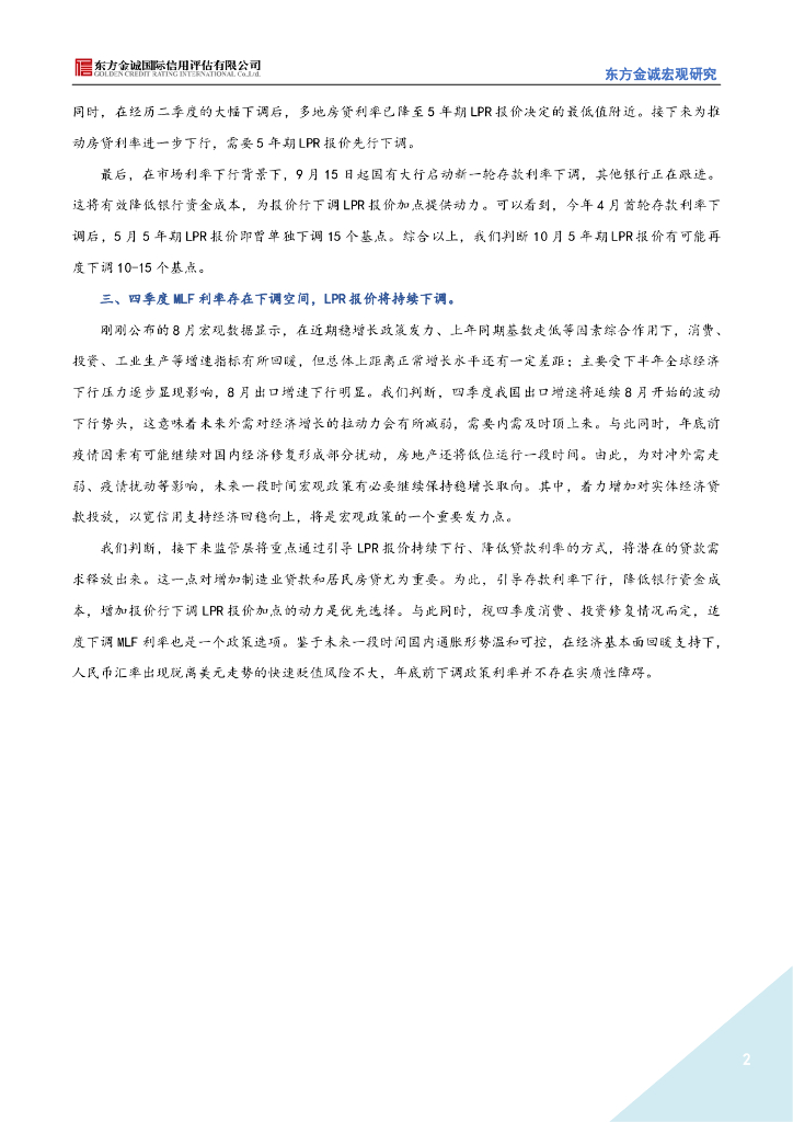 东方金诚:2022年9月LPR报价点评-9月LPR报价不变,短期内5年期LPR报价有下调空间.pdf