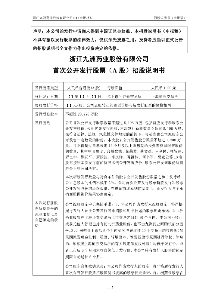 浙江九洲药业股份有限公司上交所主板IPO上市招股说明书.pdf