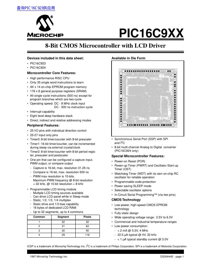 MICROCHIP PIC16C9XX 数据手册.pdf