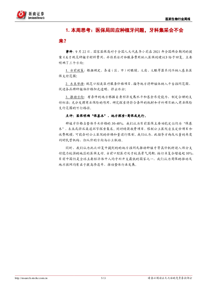 浙商证券:医药行业周报:医保局回应种植牙问题,牙科集采会不会来?.pdf