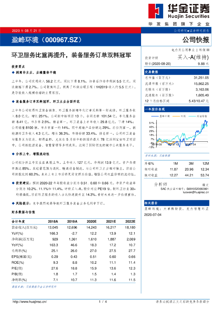 华金证券:盈峰环境(000967)-环卫服务比重再提升,装备服务订单双料冠军.pdf