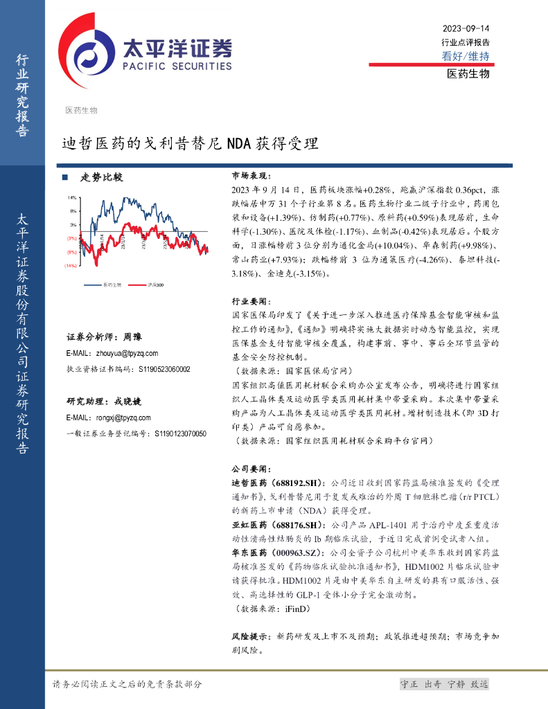 太平洋证券:医药生物:迪哲医药的戈利昔替尼NDA获得受理.pdf