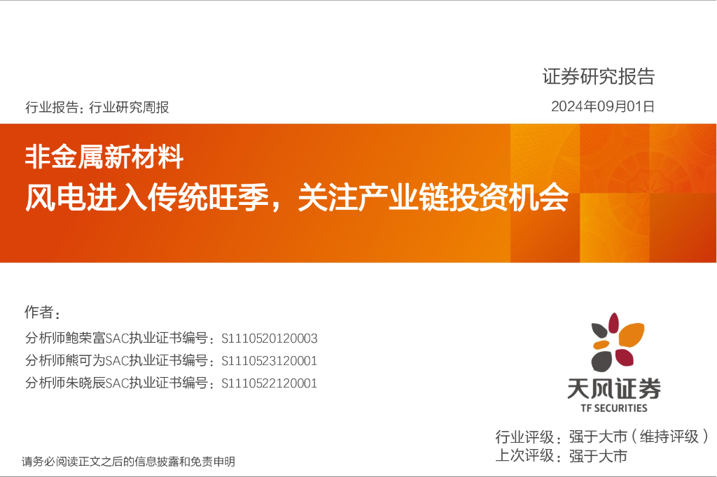 天风证券:非金属新材料行业研究周报:风电进入传统旺季,关注产业链投资机会.pdf
