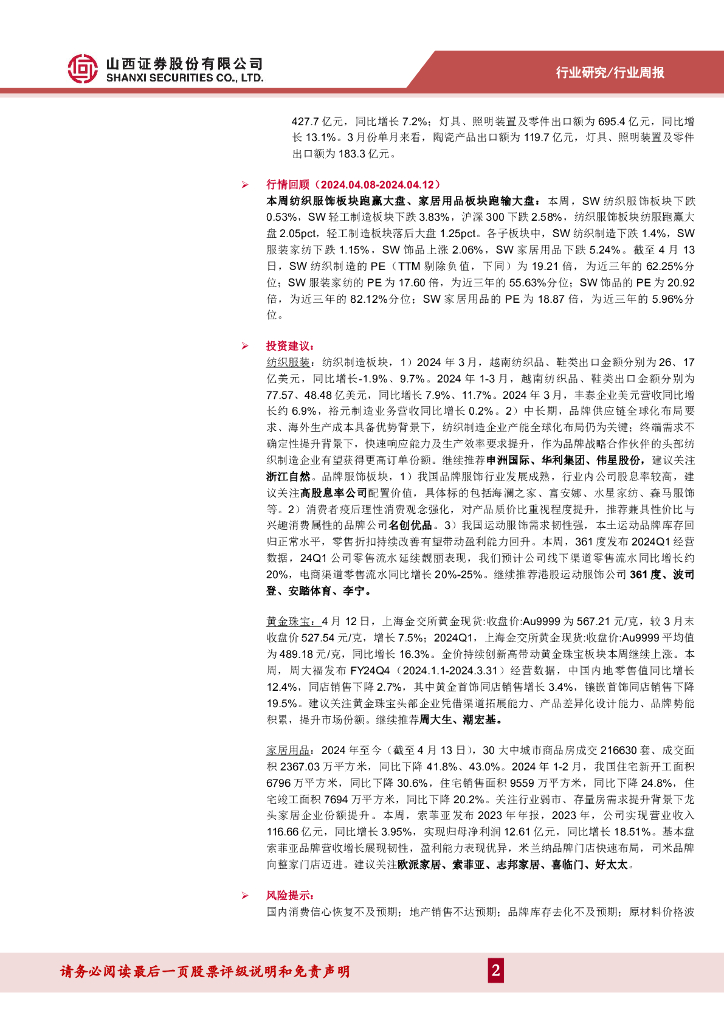 山西证券:纺织服装行业周报:24Q1我国纺织服装出口同增2.0%,迅销预计FY2024营收增长9.5%.pdf