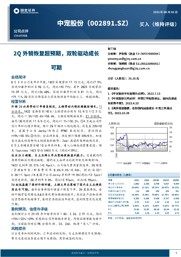 国金证券:中宠股份(002891)-2Q外销恢复超预期,双轮驱动成长可期.pdf