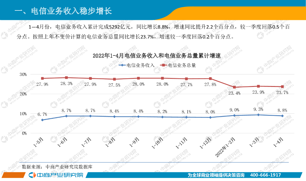 中商产业研究院:中国通信行业运行情况月度报告(2022年1-4月).pdf
