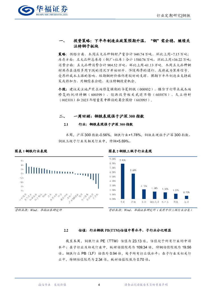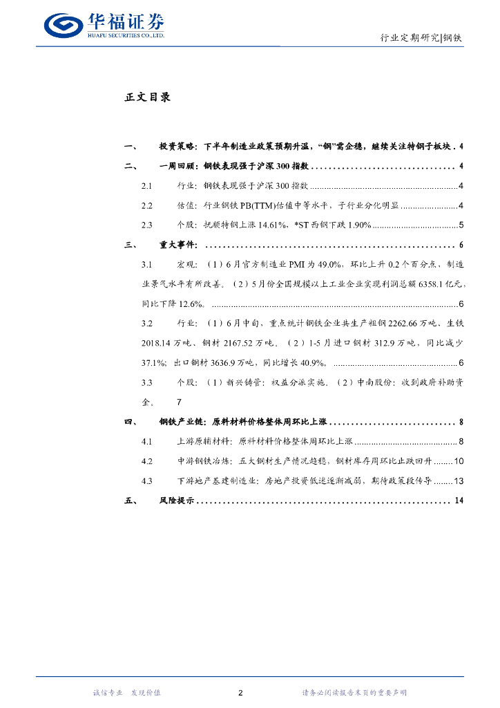华福证券:钢铁行业周报:下半年制造业政策预期升温,“钢”需企稳,继续关注特钢子板块.pdf