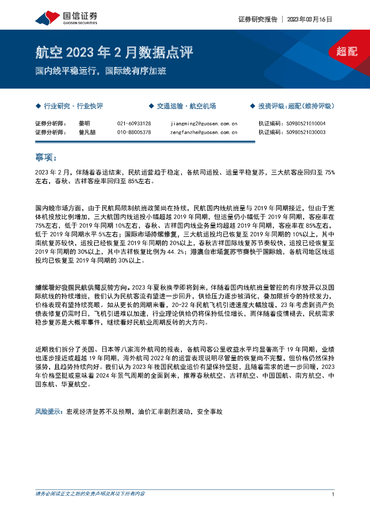 国信证券:航空行业2023年2月数据点评:国内线平稳运行,国际线有序加班.pdf