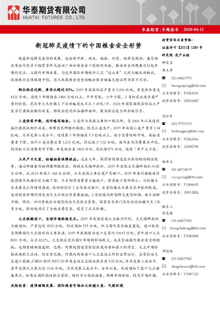 华泰期货:新冠肺炎疫情下的中国粮食安全形势.pdf