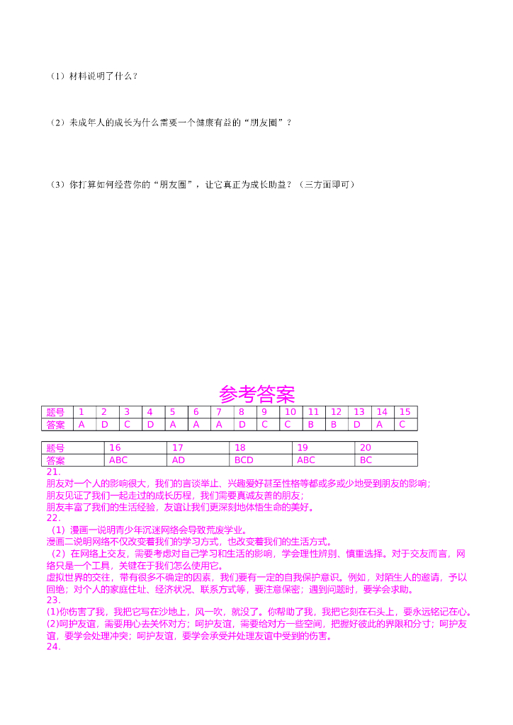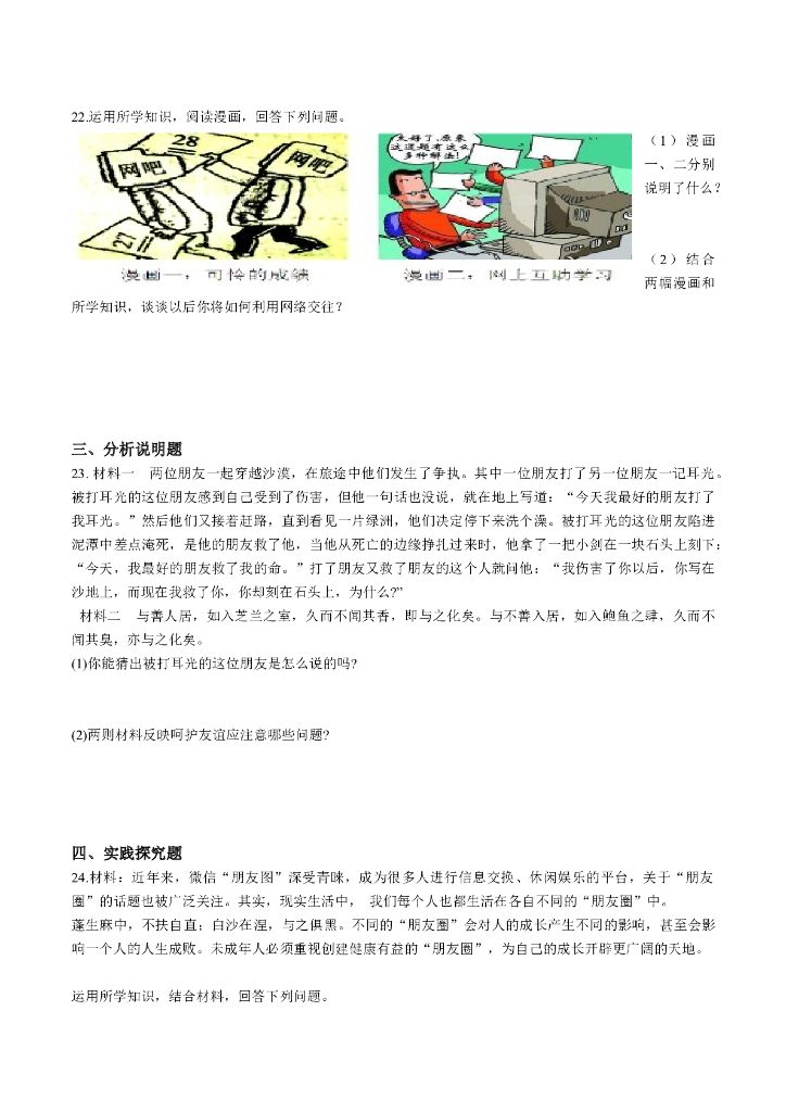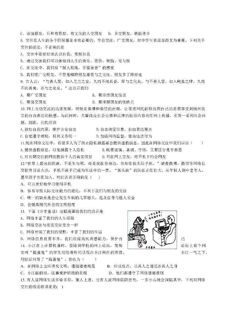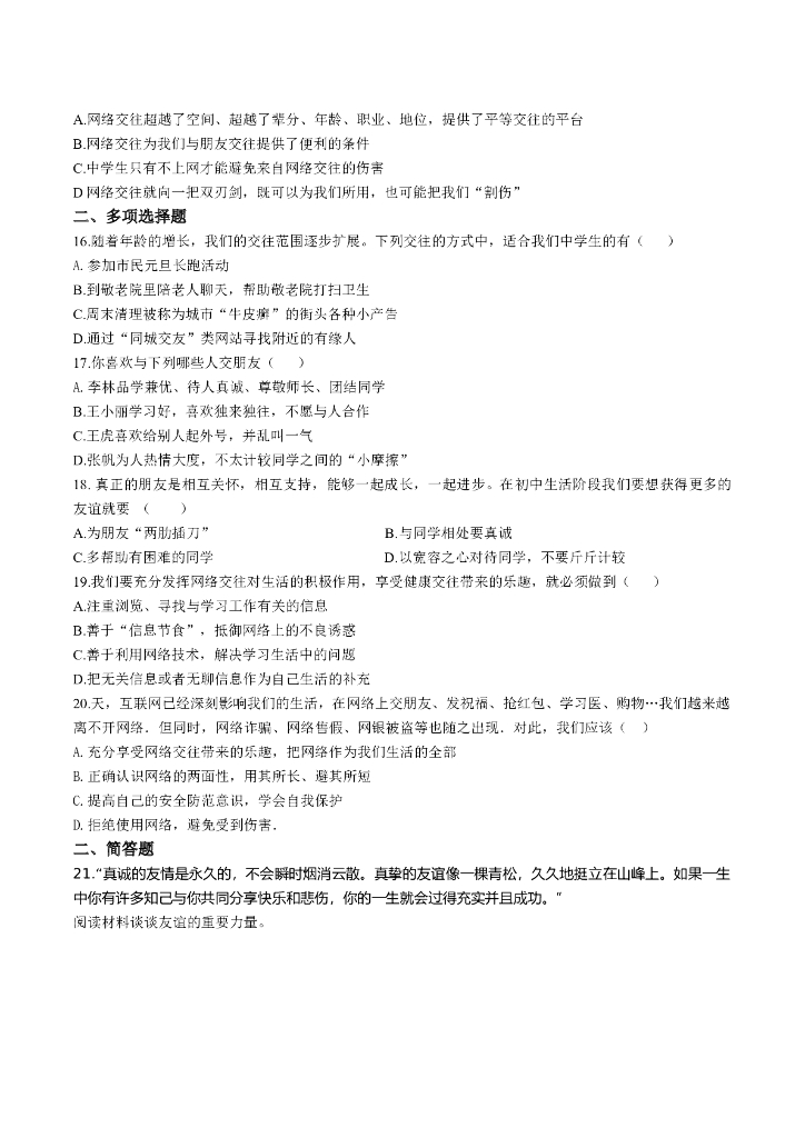 七年级上册 初中道德与法治第二单元 友谊的天空(1).doc