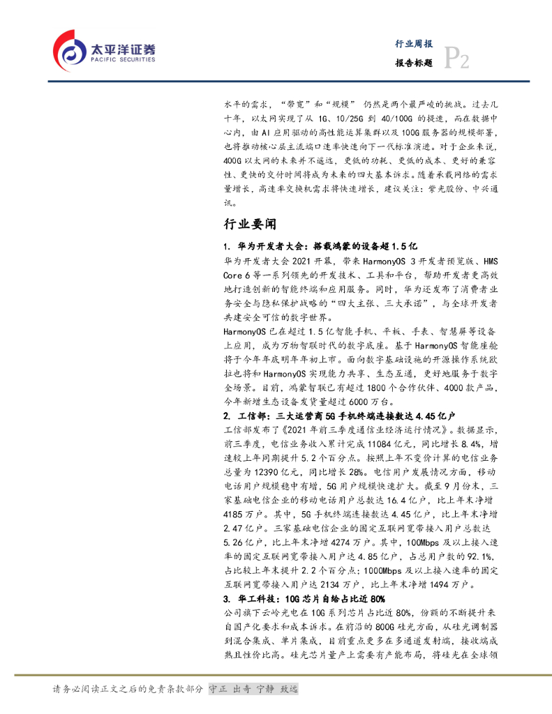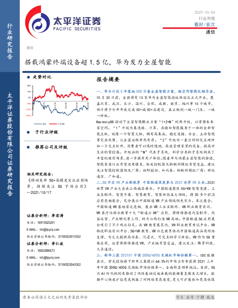 太平洋证券:通信行业周报:搭载鸿蒙终端设备超1.5亿,华为发力全屋智能.pdf