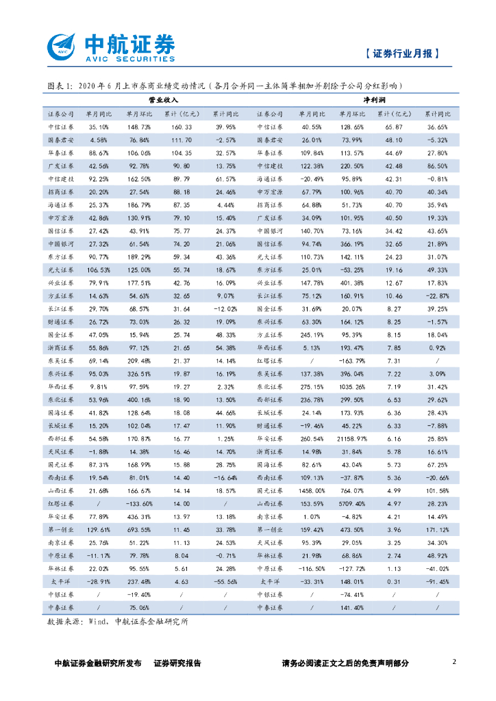 中航证券:上市券商2020年6月经营数据点评:同环比均大涨,上半年业绩稳中有升.pdf