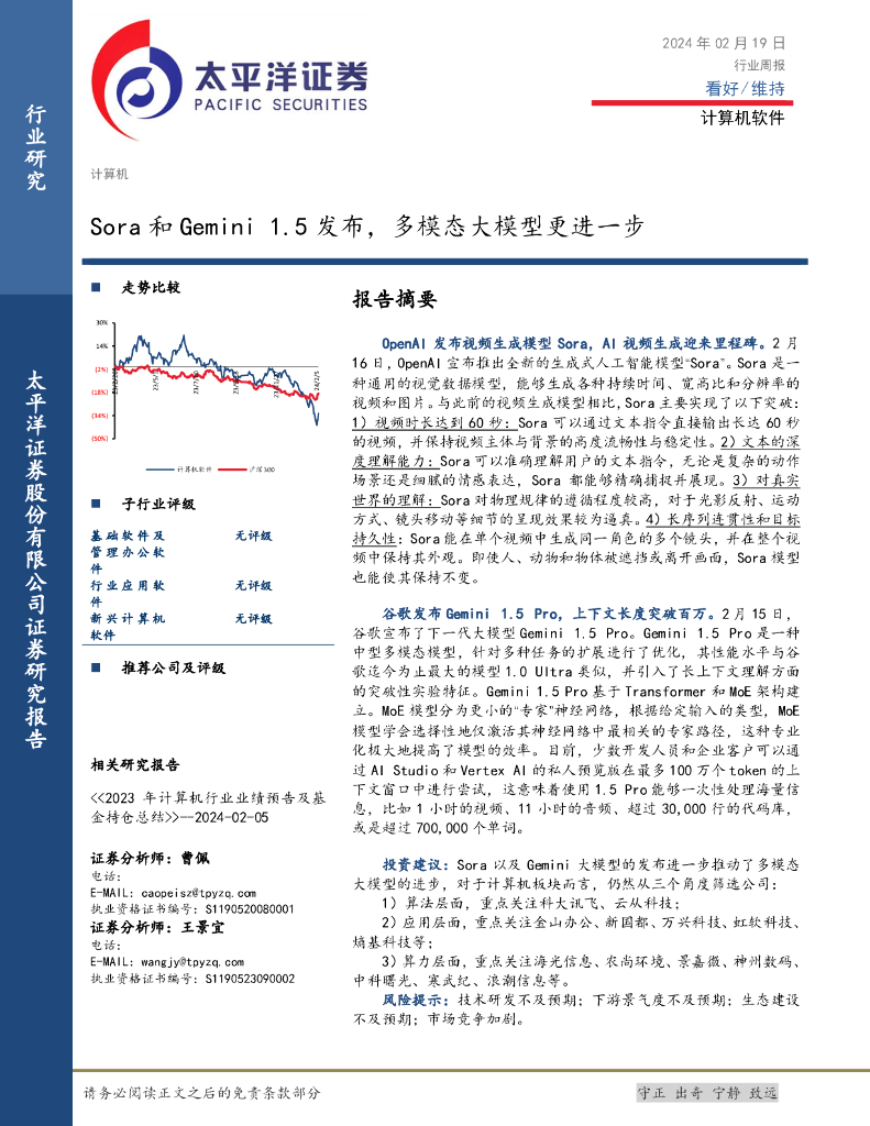 太平洋证券:计算机软件行业周报:Sora和Gemini 1.5发布,多模态大模型更进一步.pdf