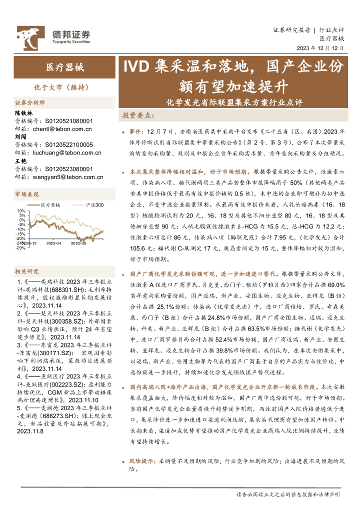 德邦证券:化学发光省际联盟集采方案行业点评:IVD集采温和落地,国产企业份额有望加速提升.pdf