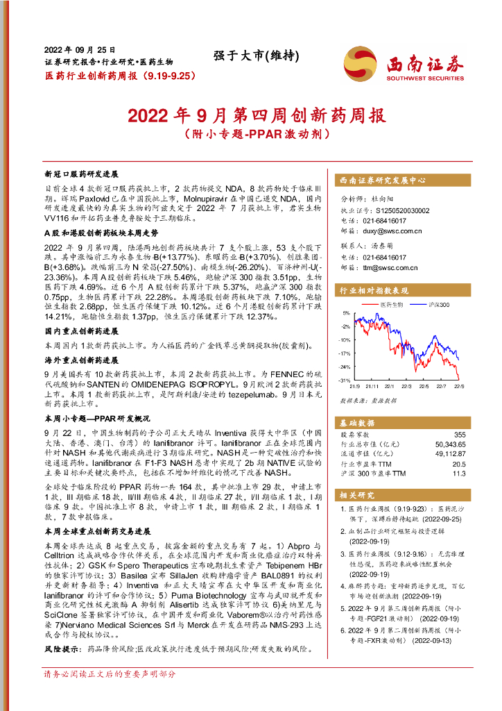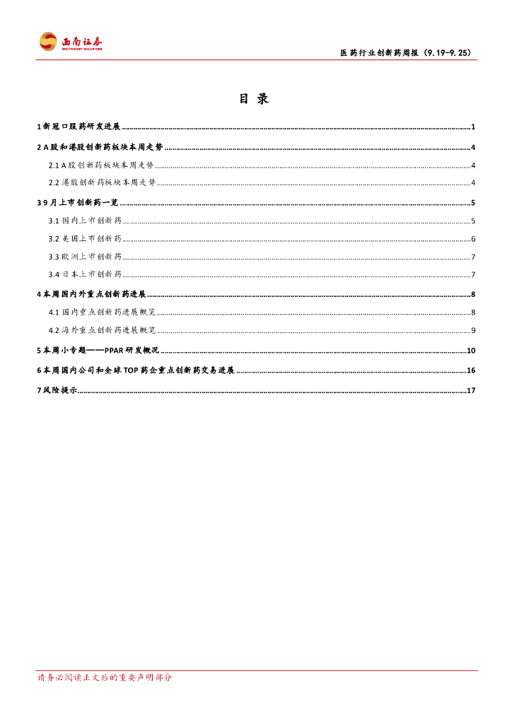 西南证券:医药行业创新药周报:2022年9月第四周创新药周报(附小专题-PPAR激动剂).pdf