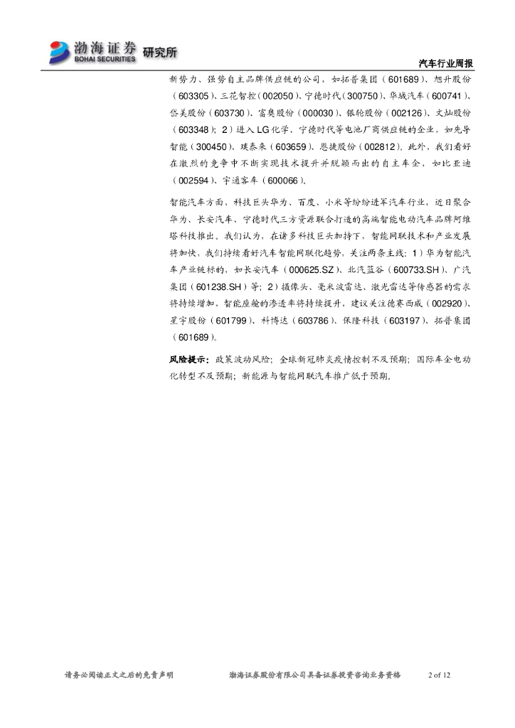 渤海证券:新能源汽车行业周报:智能电动发展提速,关注华为产业链机会.pdf