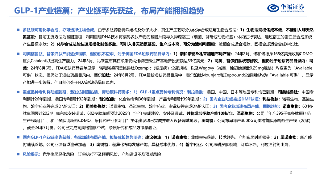 华福证券:医药生物行业深度报告:GLP-1产业链篇:产业链率先获益,布局产能拥抱趋势.pdf