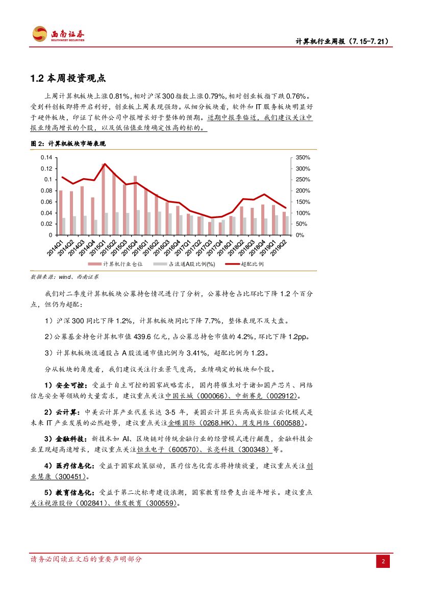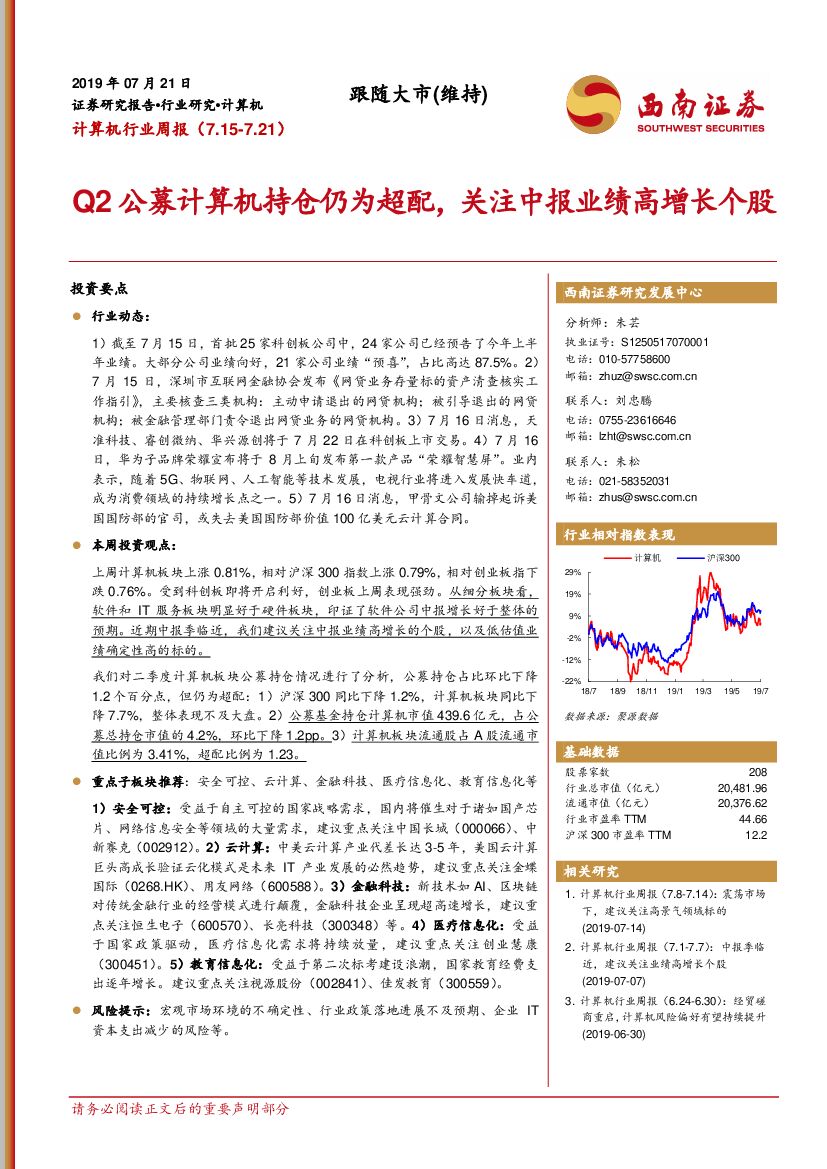 西南证券:计算机行业周报:Q2公募计算机持仓仍为超配,关注中报业绩高增长个股.pdf