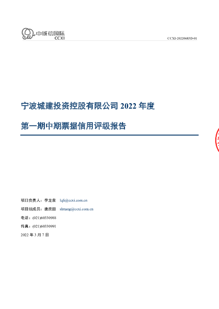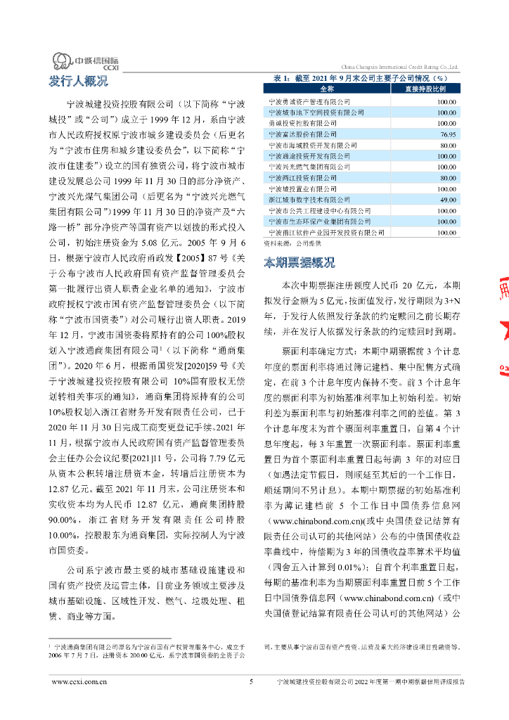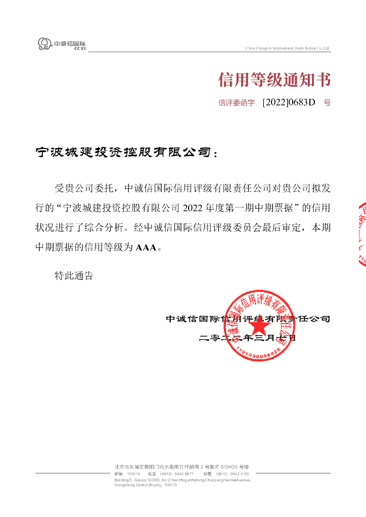 中诚信:宁波城建投资控股有限公司2022年度第一期中期票据信用评级报告.pdf