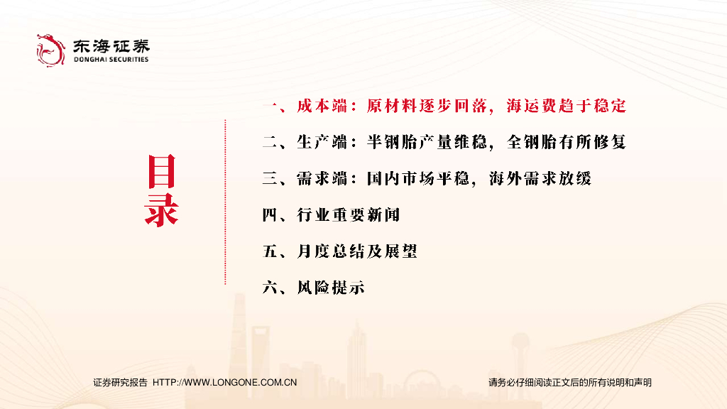 东海证券:轮胎行业月报:原材料价格回落,供需相对平稳.pdf