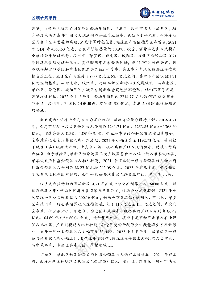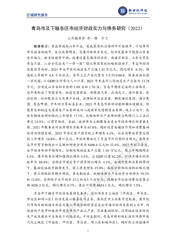 新世纪评级:青岛市及下辖各区市经济财政实力与债务研究(2022).pdf