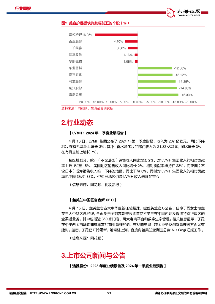 东海证券:美容护理行业周报:多家公司披露业绩,珀莱雅表现亮眼.pdf