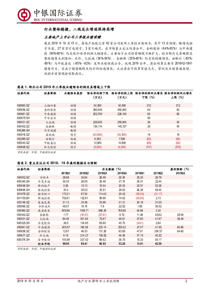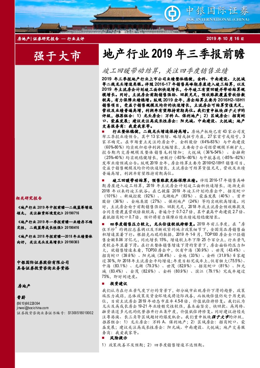 中银国际:地产行业2019年三季报前瞻:竣工回暖带动结算,关注四季度销售业绩.pdf