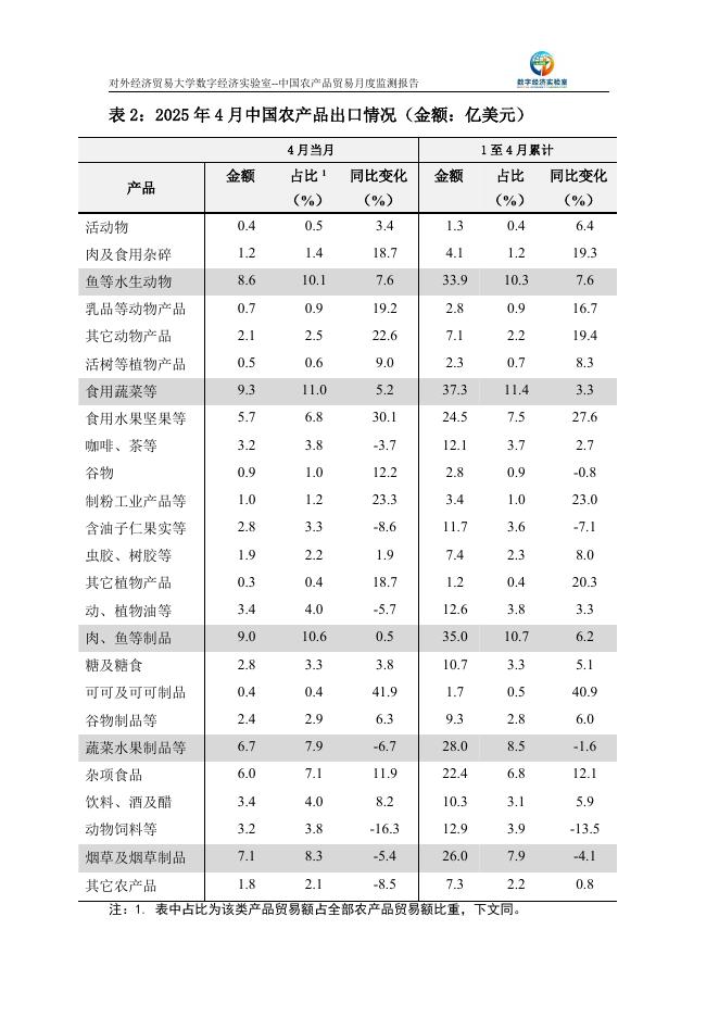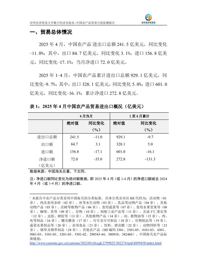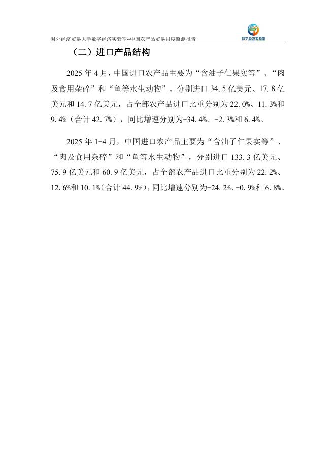 对外经济贸易大学:中国农产品贸易月度监测报告(2025年1-4月).pdf